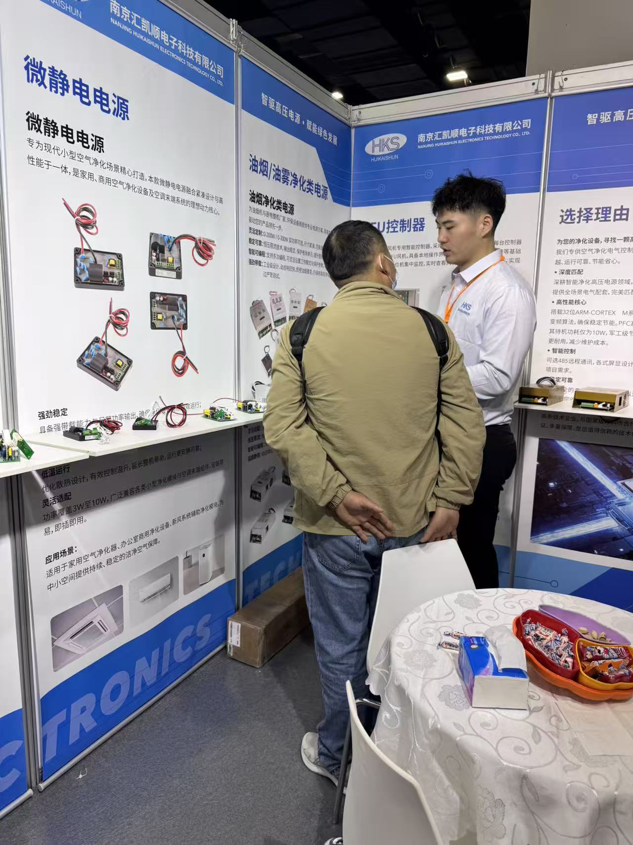 本次展会,我们携公司四大核心产品线——油烟净化高压电源、空气净化高压电源、FFU控制器及微静电电源完整亮相。其中,我们核心展出的两款通过UL权威安全认证的净化器电源产品(油烟净化/空气净化高压电源),有力彰显了公司的研发实力与严苛的品质标准,成为现场关注的焦点。这一优势吸引了众多寻求高质量、合规出口部件的空气净化器制造商以及关注产品国际准入资质的海外客商前来咨询交流,现场洽谈气氛热烈。