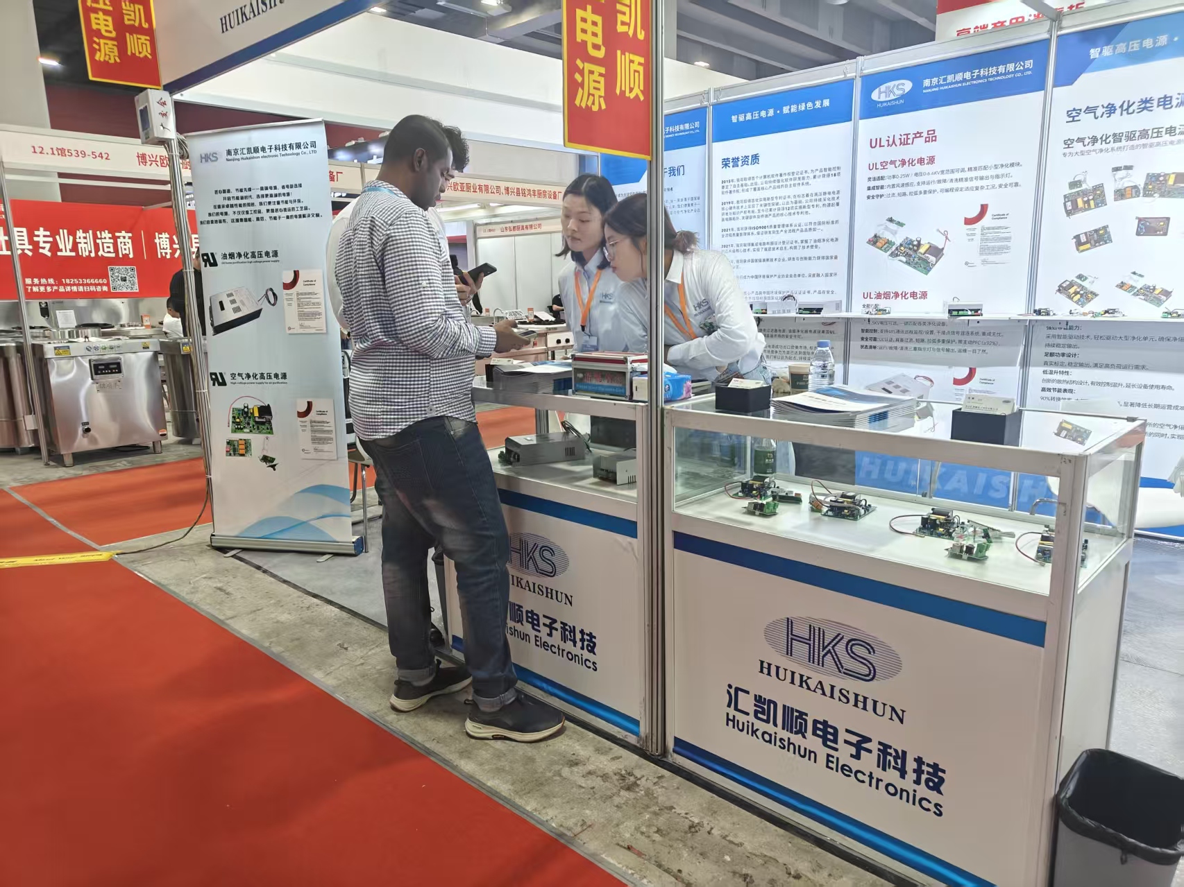 本次展会,我们携公司四大核心产品线——油烟净化高压电源、空气净化高压电源、FFU控制器及微静电电源完整亮相。其中,我们核心展出的两款通过UL权威安全认证的净化器电源产品(油烟净化/空气净化高压电源),有力彰显了公司的研发实力与严苛的品质标准,成为现场关注的焦点。这一优势吸引了众多寻求高质量、合规出口部件的空气净化器制造商以及关注产品国际准入资质的海外客商前来咨询交流,现场洽谈气氛热烈。